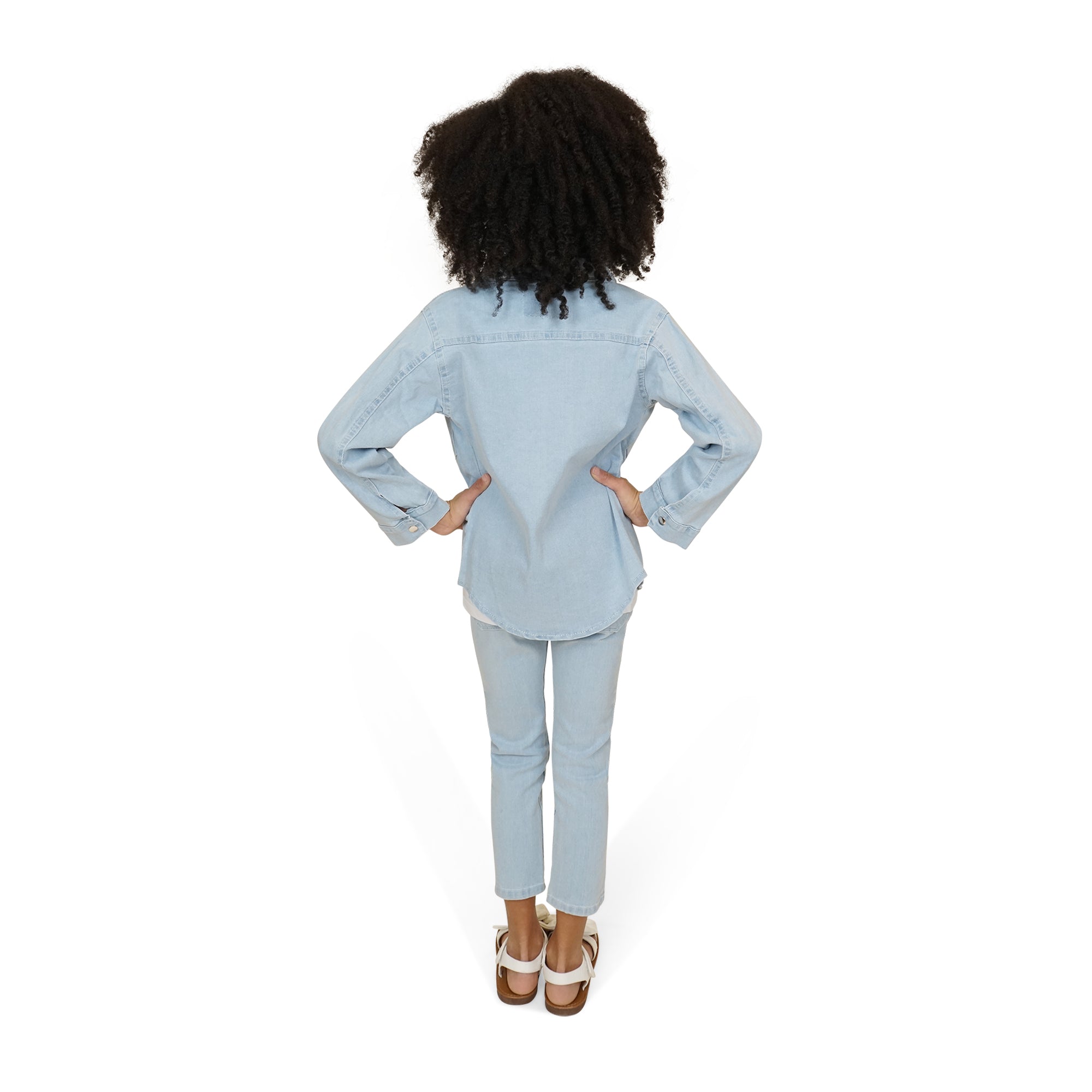 Simple and fashionable denim set for your little sweetheart with knit denim jacket, printed t-shirt, and skinny jeans with elastic waist (100% cotton)