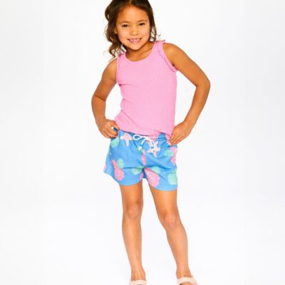 Our crinkle jersey shorts blue with shell print are light and fun for summer adventures. These bottoms feature an elastic waistband with a drawstring tie, slant pockets, and a straight fit for comfort and ease. Decorated with an allover seashell pattern, they’re a perfect choice for girls, easy to coordinate with tops and sweaters from…