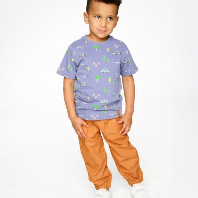 The organic cotton jersey t-shirt in blue with bicycle print is a playful basic for boys who love adventure. This short-sleeve tee showcases a fun bike and car allover print that bring movement and style to the look. Crafted in soft organic cotton jersey with a hint of stretch, it ensures breathability and all-day comfort.