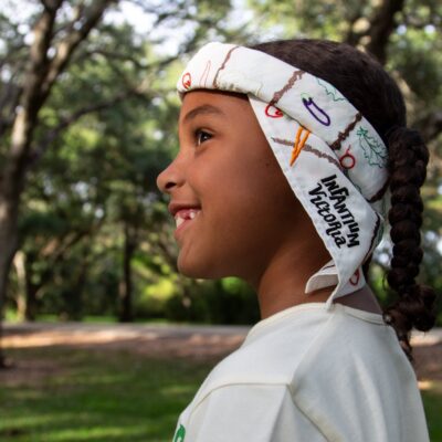 Introducing 100% organic cotton off-white bandana for girls and boys. This unisex cotton head scarf is a perfect accessory. There are numerous ways of wearing this luxury scarf – on the head, as hair accessory, on arm, as neck scarf. Embroidered bandana is also available in black colour. Vegan 100% Certified Organic Cotton Designed in…